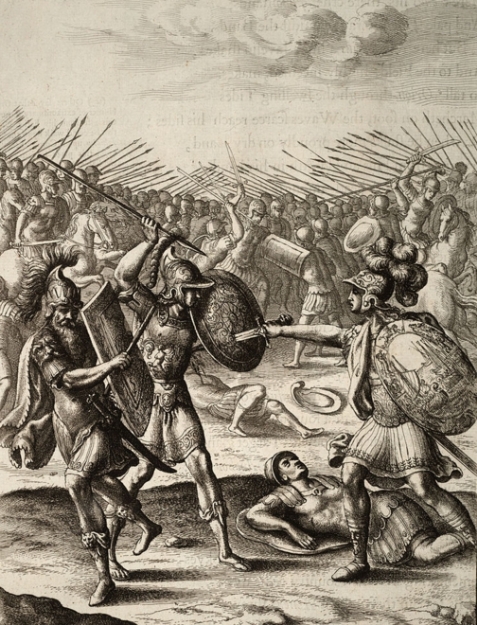 阿斯卡尼俄斯与莫增提乌斯、劳索斯激战。文策斯劳斯·霍拉(Wenceslaus Hollar,1607——1677)绘