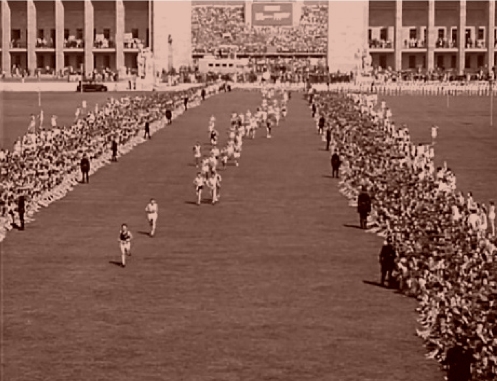 1936年,里芬施塔尔拍摄了反映柏林奥运会的纪录片《奥林匹亚》。《意志的胜利》取得的成功成了她的政治资本,使她能以纳粹的国家机器为后盾,动用大量的人力物力,不择手段地展示纳粹的美学意识。拍摄《奥林匹亚》可以说是对从《意志的胜利》所取得的拍摄经验更为铺张的发挥。里芬施塔尔带领庞大的摄制队伍进驻赛场,用高速摄影机、水下摄影机、长焦镜头,那些当时的先进设备大张旗鼓地展开拍摄。为了获得表现动态的新颖角度,她甚至不惜冒着妨碍比赛的批评,在场地上开挖沟槽,把摄影机埋入地下,以仰视的角度拍摄运动员。她还租赁飞机进行航拍,这种上天入地大事铺张的恢弘气势,让人觉得不是她在为奥运会拍摄纪录片,而是为了拍摄《奥林匹亚》,才开了柏林奥运会。她在拍摄期间口口声声说:“奥运会开14天就要结束,而我的电影至少要让人家看20年。”
