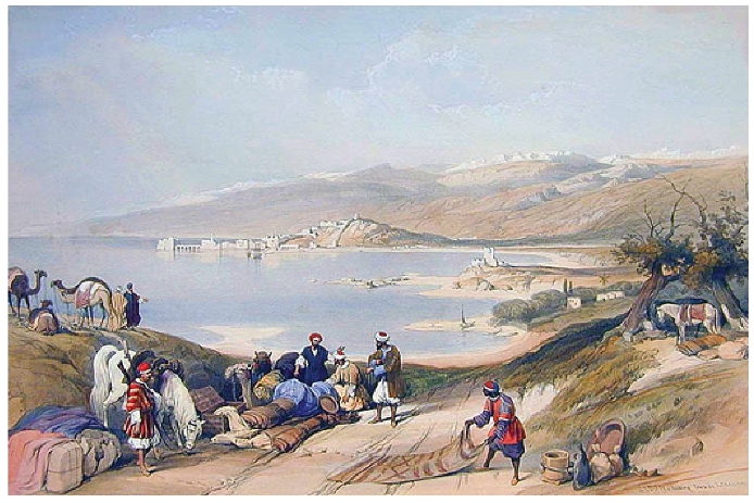 西顿港位于地中海东岸,今黎巴嫩南部沿海。图为古代西顿港的遗址。大卫·罗伯茨(1796—1864)绘于1860年