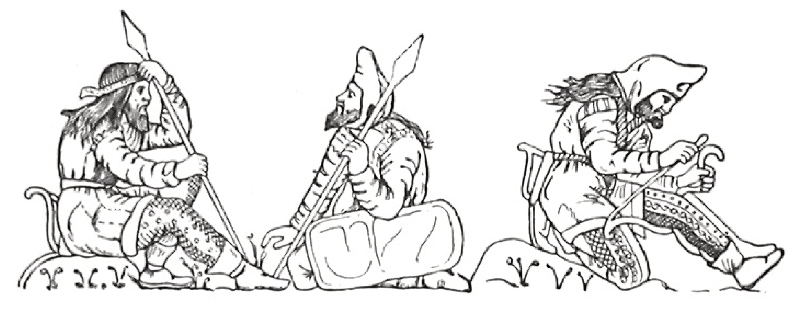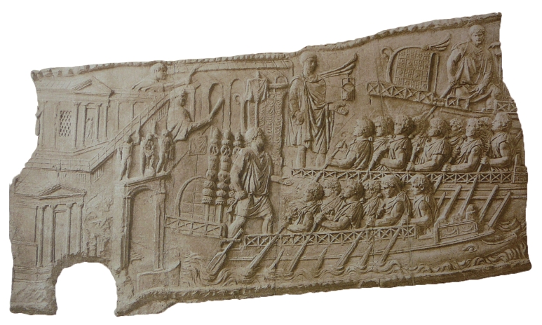 一组浮雕,古代三列浆船,浆手们正在努力地划桨