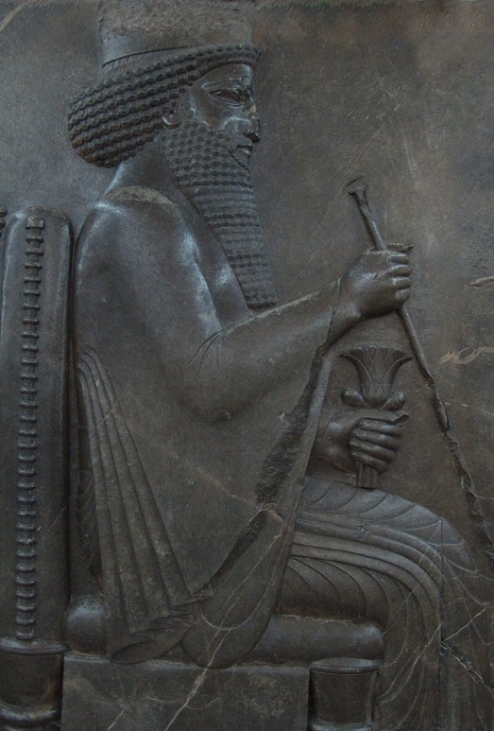出自波斯帝国古都的一块浮雕,上面的人物为大流士