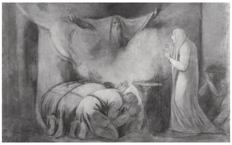 阿托莎与大流士。这幅画描绘了大流士化身幽灵,而阿托莎惊恐地看着。乔治·罗姆尼(1734—1802)绘