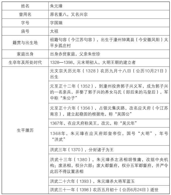 如果要在1368—1644年的明朝选择一个最著名的人物,自然非朱元璋莫属。在这位大明王朝的开创者身上,历史与传说纠缠。他出身赤贫,少年时曾作为小行童和游方僧四处游荡,却通过二十余年的奋斗建成了大明王朝。作为明朝的开创者和主要的制度设计者,朱元璋生前面临的最重要问题,就是如何永葆其朱氏王朝的稳固。分封诸子、废丞相、实施“胡、蓝党案”屠戮功臣、颁行《祖训录》,这些措施的目的都是保证朱姓天下绵延永续。而且,从效果来看,虽然像分封诸子这样的政策是失败的,但总体的制度设计却是成功的。明朝276年的历史中,除了少数几次宗室叛乱和偶尔爆发的农民起义之外,皇权几乎很少受到挑战。孟森先生在《明清史讲义》中起笔写道:“明祖有国,当元尽紊法度之后,一切准古酌今,扫除更始,所定制度,遂奠二百数十年之国基。”开国后,朱元璋屠戮功臣株连之广,惩治贪官之严酷,也都是人们常谈的话题。在这里,我们想要尝试回答的问题是:朱元璋何以能够建立大明王朝?朱元璋的制度设计有何利弊?朱元璋的统治风格对于明王朝有什么样的影响?
