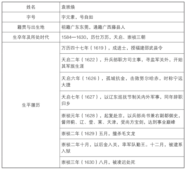 袁崇焕履历表