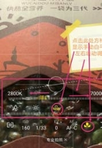 图四所示的是对焦测光的调整功能(白圈为测光)。前面我们在手机拍照中已做过简单的介绍,这一功能是一种简便、易行的测光方式。无论是拍照模式、专业拍照模式,还是上面介绍的三种测光方式,只要按住手机屏幕即可启用这一功能。这一功能与点测光方式类似。