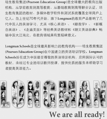Longman Schools是全球最具影响力的教育机构——培生教育集团(Pearson Education Group)在中国建立的英语培训学校。Longman Schools旨在成为中国最受尊敬的英语培训机构,应用国际认可的教材,由经过专业培训的教师授课,提供优质的服务来帮助学习者提高英语能力。