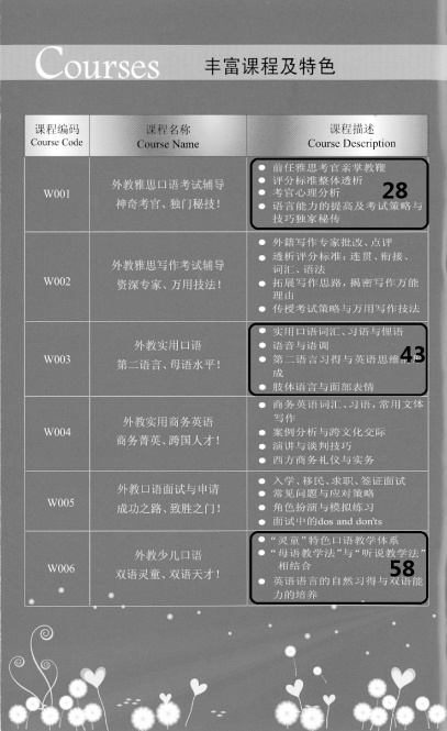 Stimuli 43,58 and 28 are all verbal and they differ only in the spatial location.They appear originally in a table about course information which occupies a whole page in an English learning leaflet(see Figure 7.16 below).They are located in the different rows of the same column.Slide 28 is the grid at the top,Slide 43 is the one in the middle and Slide 58 is the one in the bottom.In the 3 versions of the memory recognition test which differed only in the presentation order of the stimuli,the three verbal texts were also presented in three different orders,with some other stimuli inserted in between so that participants were expected not to notice the similarity and possible comparison between them.The reaction time and correction rate in the three versions are summarized in Table 7.12.We can see that the correction rate decreases as the location goes from top to bottom.
