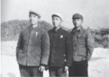 作者(右)与来前营村接受再教育的北大学生高尚楷(中)邱幼祥(左)合影。