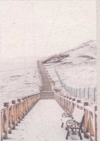 唐克山坡的木栈道,像一条小小的长城,沿着它登上山顶,放眼望去,一切景色尽收眼底,无边无际的高山与草原,一直到天的尽头,黄河如玉带一般从天尽头流过来,又向另一端的天尽头流过去。
