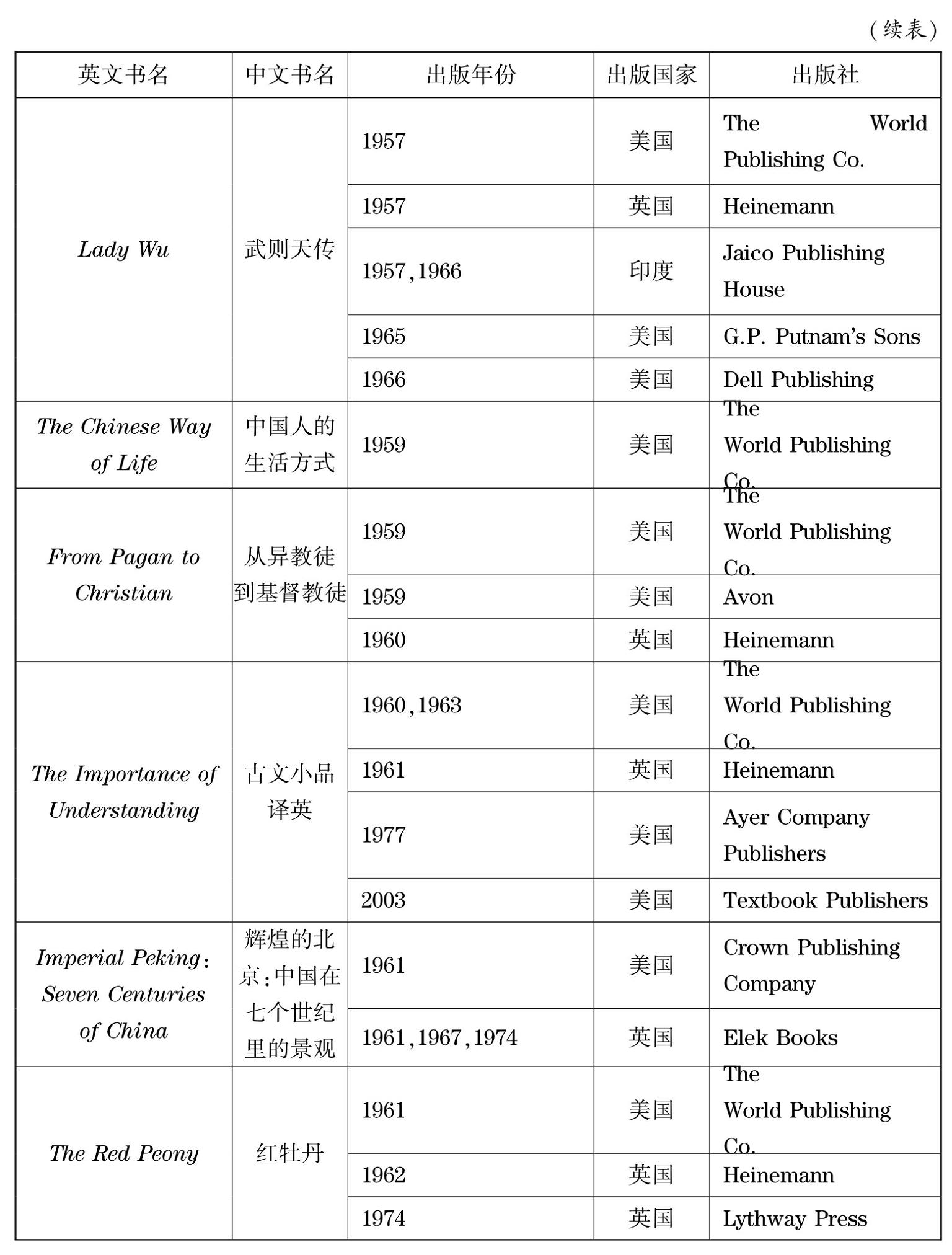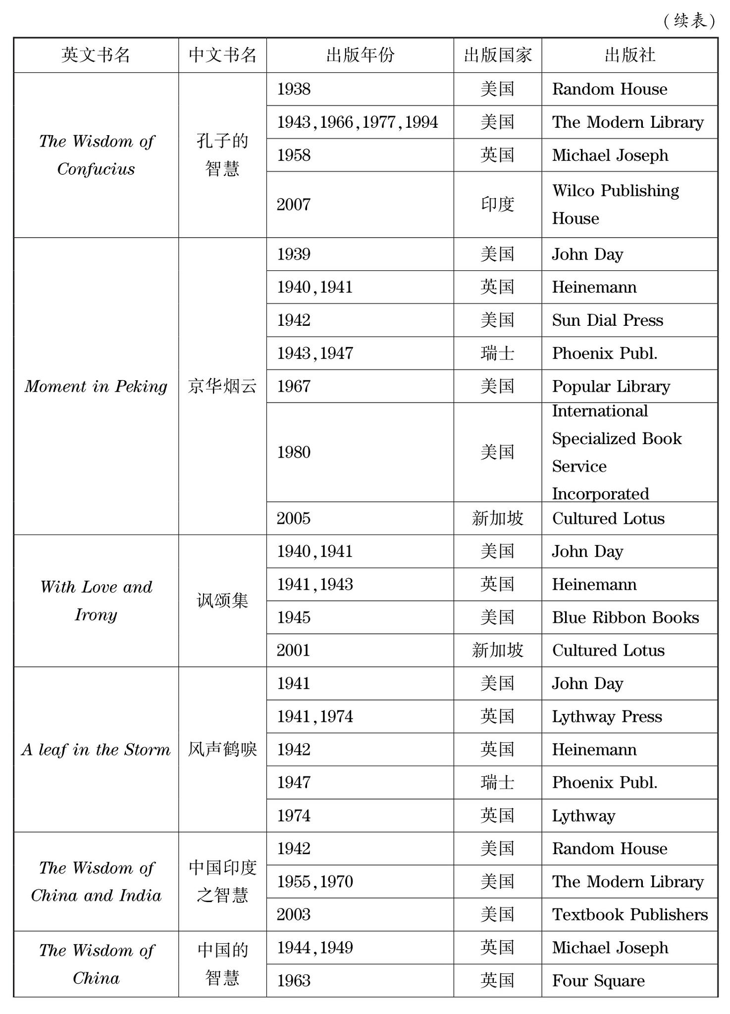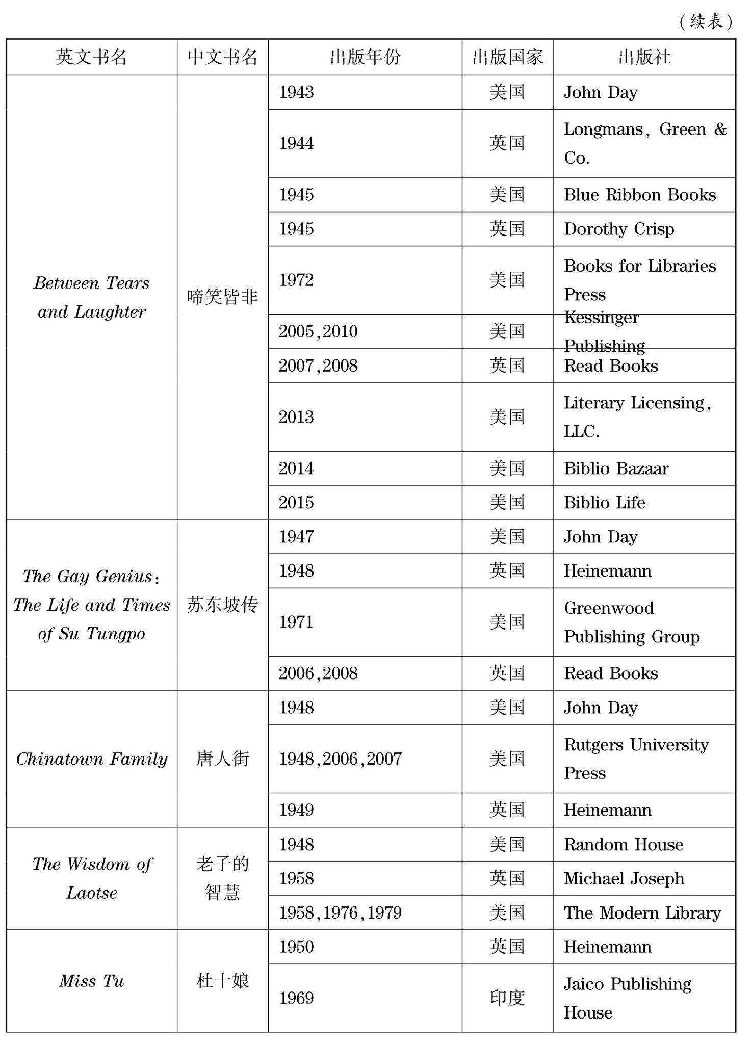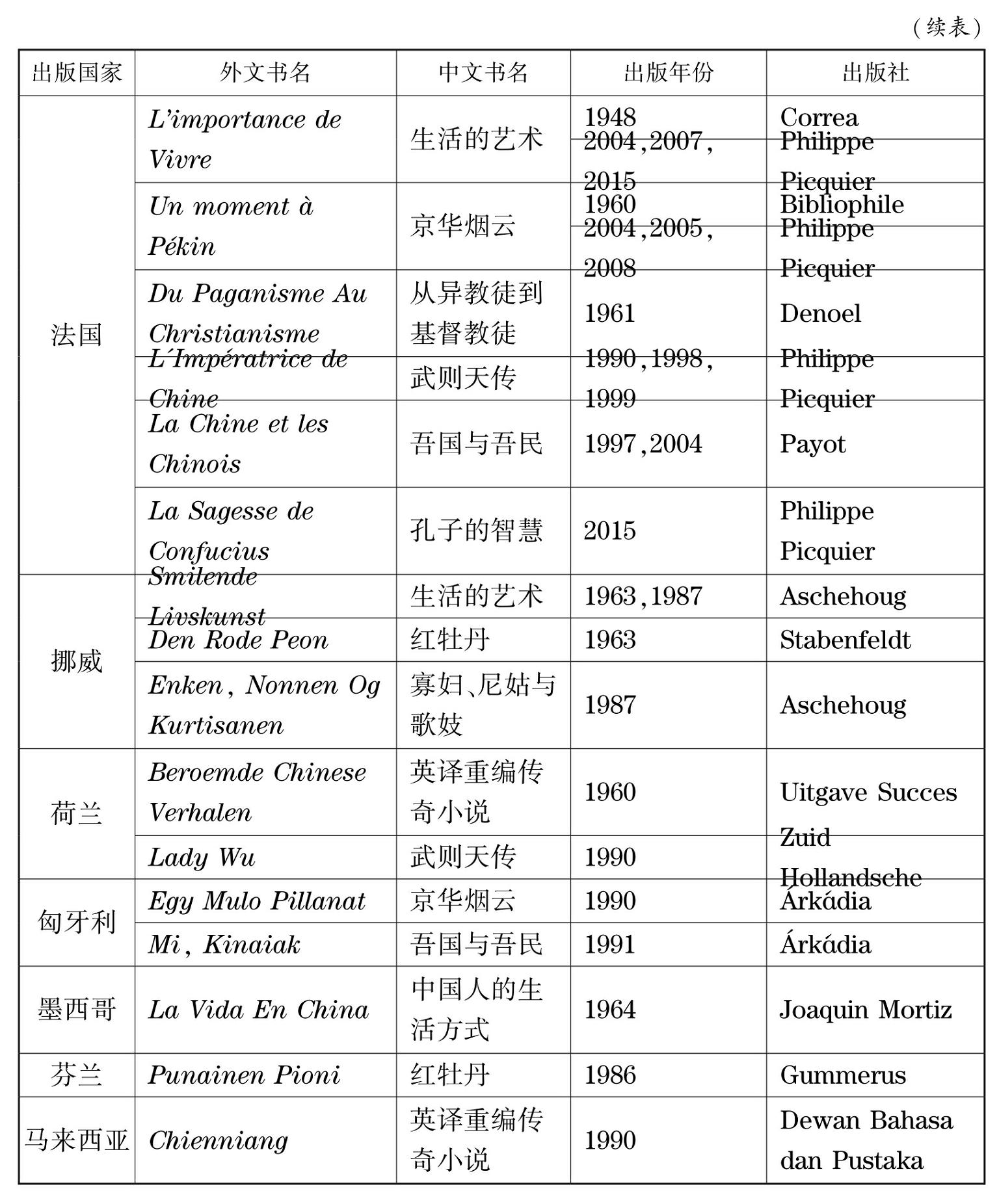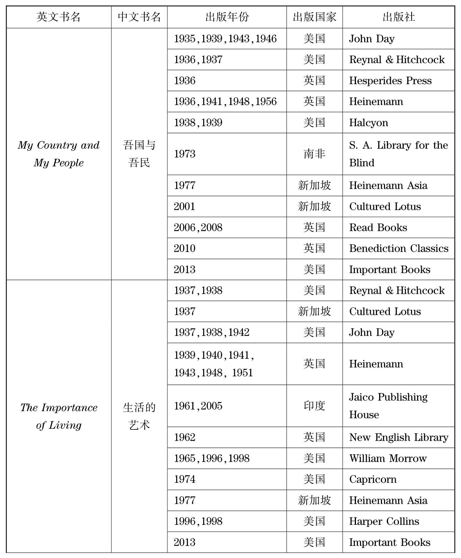 1.9.15.1 林语堂译创作品海外出版情况分析