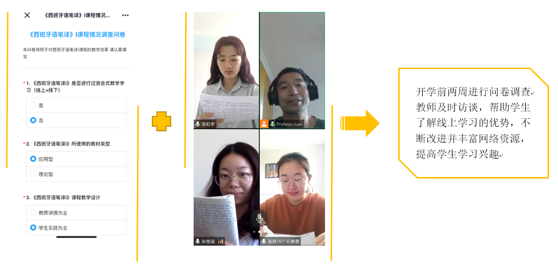 本课程本着 “以学生需求为中心”的教育理念,在开课前两周进行调查问卷,调查问卷结果显示,学生对在线教学的认知和理解不同,教师通过及时访谈的形式,帮助学生了解线上教学的特点和优势,不断改进线上教学,丰富网络资源,提高学生的学习兴趣及学习效果。