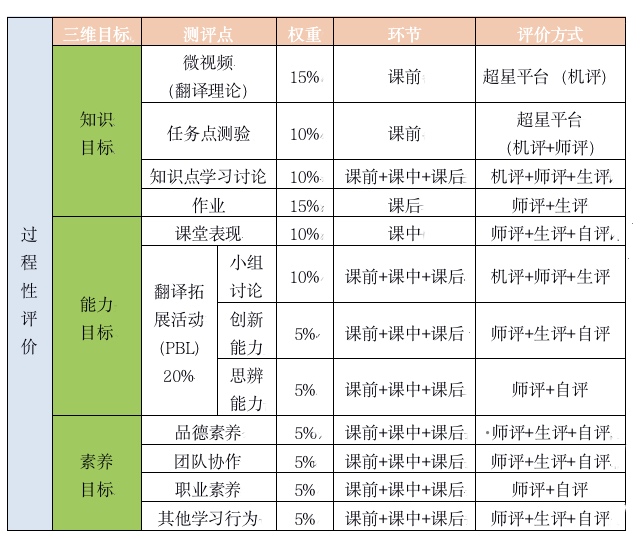 在线教学效果在某些方面缺乏有效的监控,因此教师设计了多样的教学活动,多元的过程性评价,采取了多方面的监督和引导措施。本课程采取过程性评价与终结性评价相结合的模式,其中过程性评价采用多元、多维评价体系。过程性评价针对三维目标和三个教学环节进行全方位评价,知识评价反馈掌握知识情况;能力评价反馈能力培养情况,关注学生创新能力、思辨能力等;素质评价反馈了学生对中国文化认同感、品德素养、职业素养及团队协作的养成情况等。