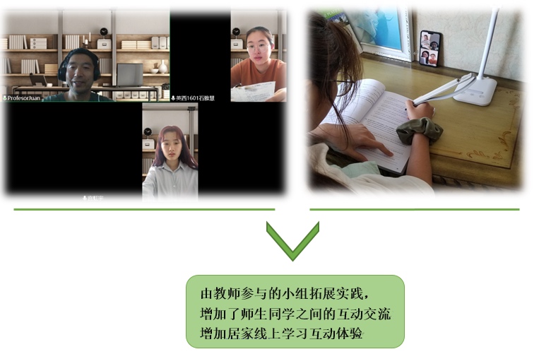 教师针对学生在线上学习中出现的问题,进行课后个性化指导。同时课程教师还参与学生小组拓展活动,增加了师生之间的交流及互动体验,提高学生学习的兴趣。