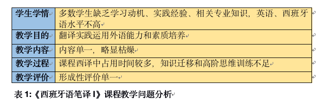 本课程授课对象为英语(英西双语)专业16级2个班的学生,共51人,经调查,在之前的一个学期的《西班牙语笔译I》课程中,课上教师以讲授翻译理论为主,学生没有混合式教改体验,笔头翻译能力尚未形成,在翻译实践方面练习很少,学生对翻转课堂的认知有一定的局限性,缺乏自学能力。