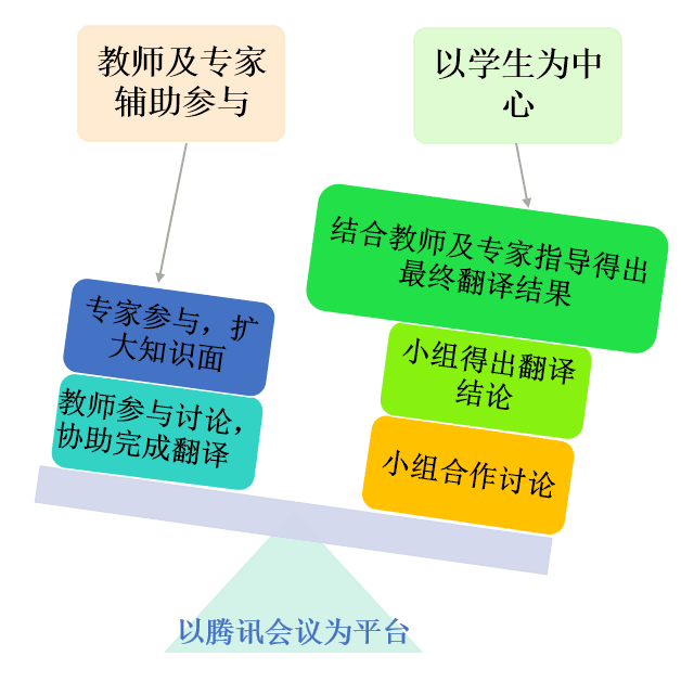 以翻转课堂的教学理念进行应用西班牙语笔译实践,学生在课前观看教师的视频讲解,自主学习,并把自主学习中出现的疑问以小组为单位带到课堂上,老师和学生间,学生小组之间共同讨论,合作探究新的翻译方法、同时分享西班牙商务部培训平台专家的讲解,共同完成笔译实践。