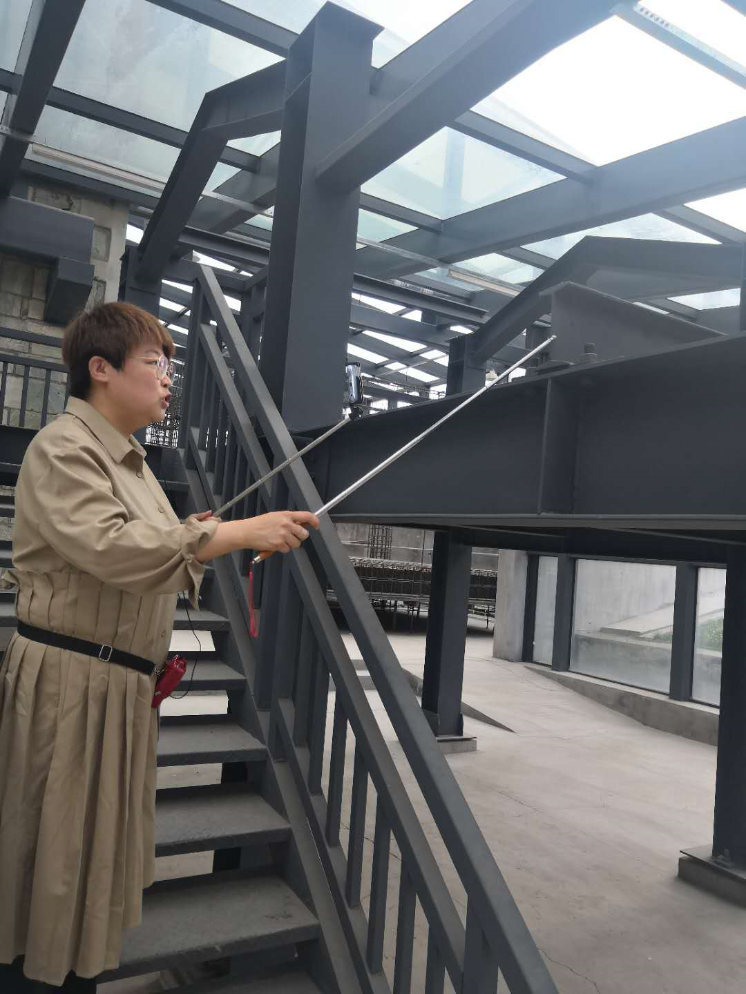 “停课不停学”对于大家来说,是一次挑战,更是一次很好的探索和创新教学方式的机会。结合本课程“轻理论、重应用”的目标定位,在教学设计中想到以学校工程实训中心为依托,充分利用1:1钢平台结构实物,进行“现场直播”教学,对当堂所学的构件或节点进行展示,以学生参观、讨论为主,教师讲授及答疑为辅。通过现场教学,使学生在网络的另一端也能对知识点有更加直观的认识和感受,加深对理论学习的理解,体验感如同线下,为在线教学增添色彩。