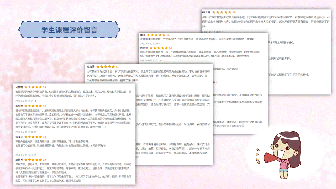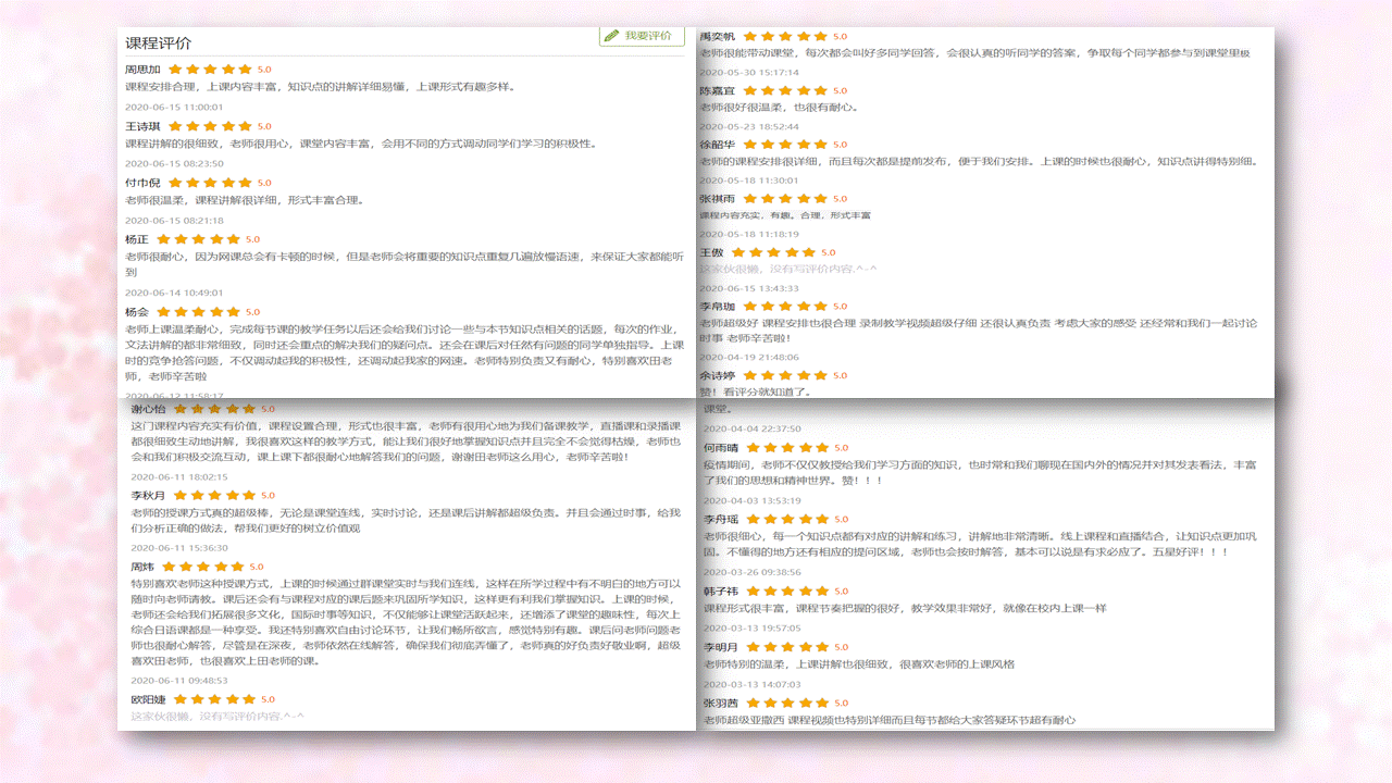 4个单选题。主要是评价教师的授课质量能否满足学生的自主学习需求。需要注意的是个别学生没有在课下进行反刍和复习,不能够自觉进行课程的复盘。