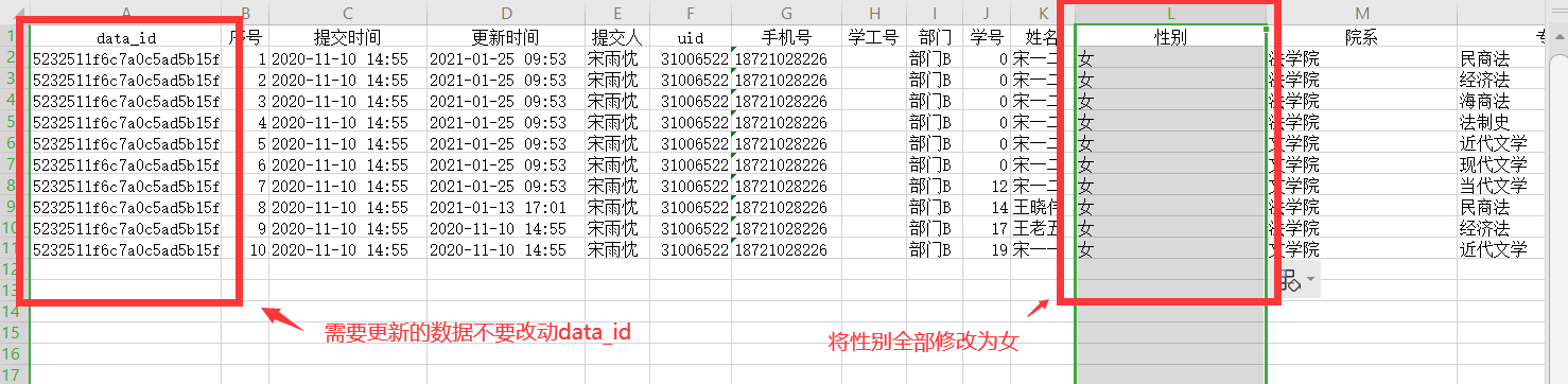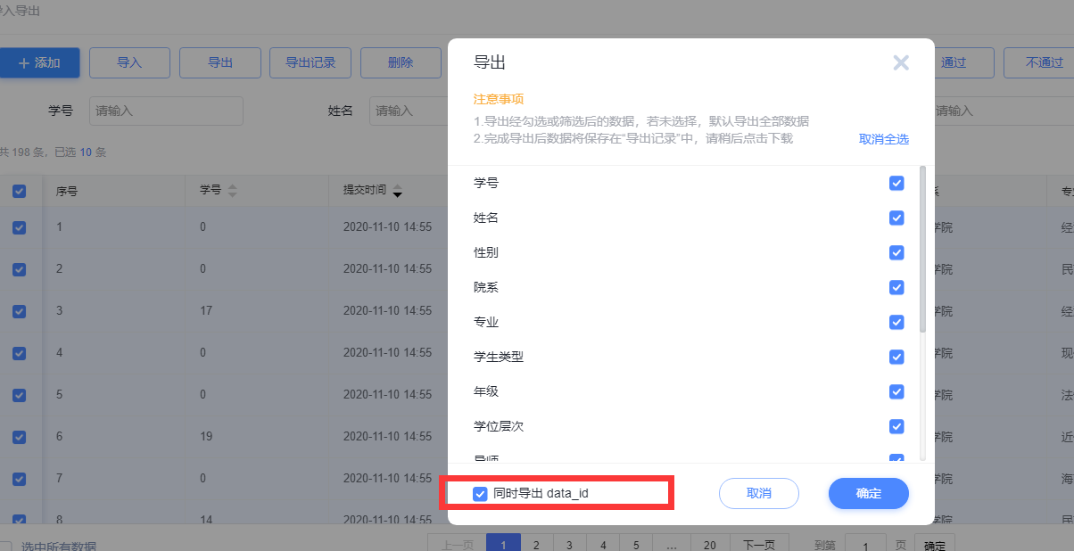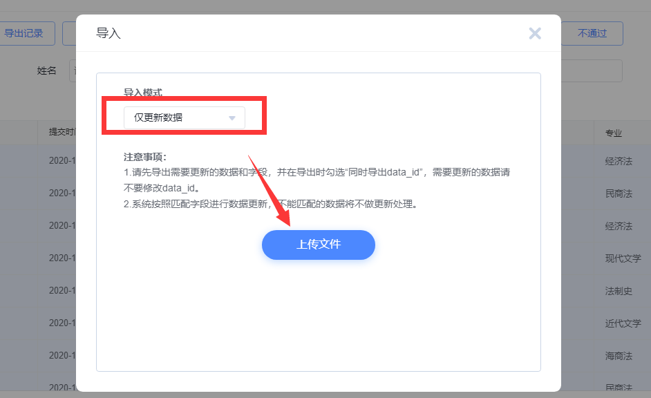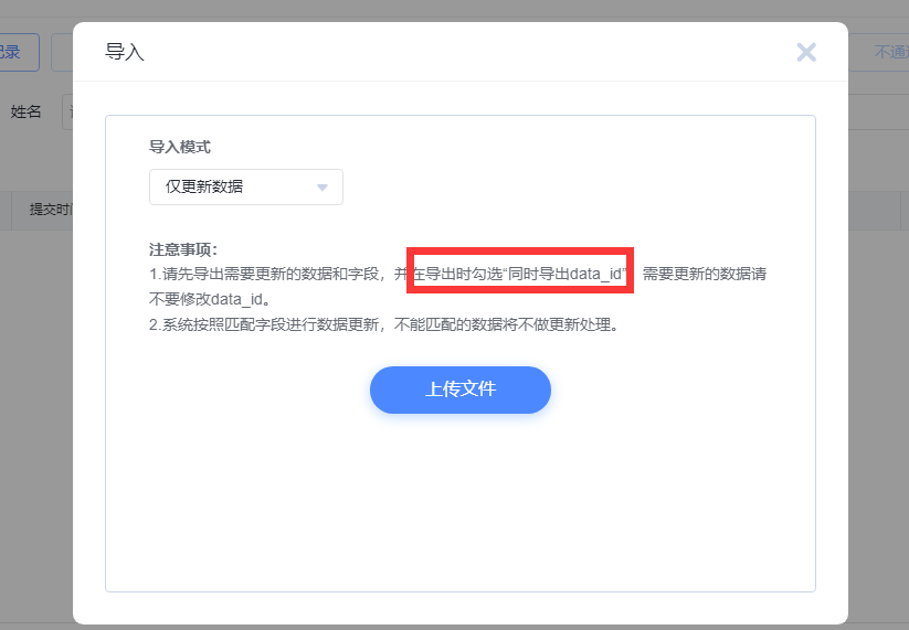B.仅更新数据:先下载需要修改的数据,在数据导出时勾选“同时导出data_id”。
