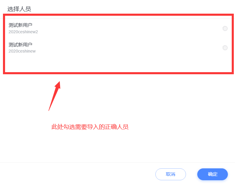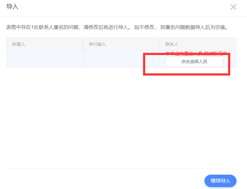 ③联系人,所属人:支持直接输入姓名、姓名#学工号#、姓名*手机号*进行导入,如有重名,需手动进行选择确认:
