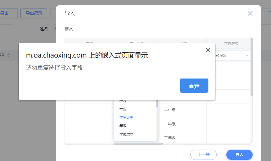 注意:如需更改导入字段,需先将目标字段设为不导入,同一个字段值不能重复导入。