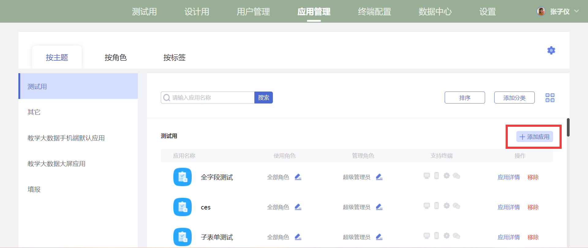 所描述的,可以在微服务-应用管理中添加、管理表单类应用。