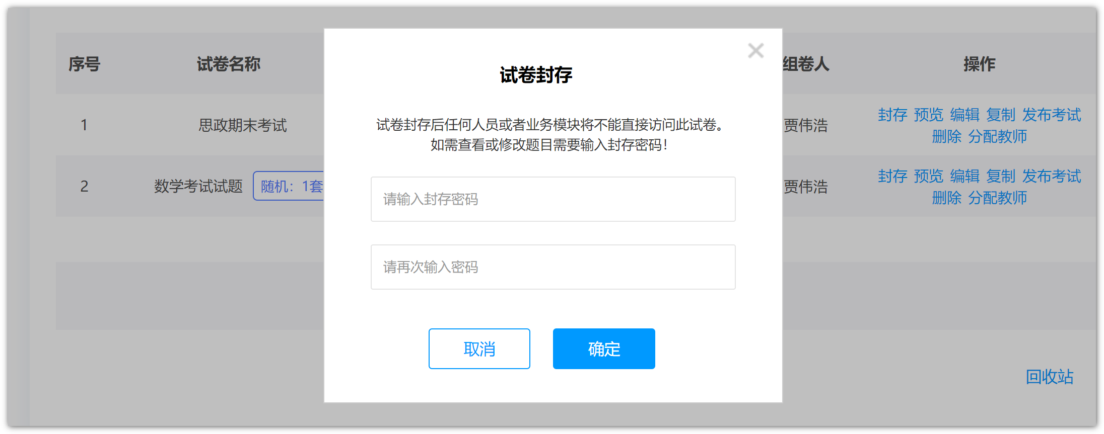 试卷封存与题库安全口令