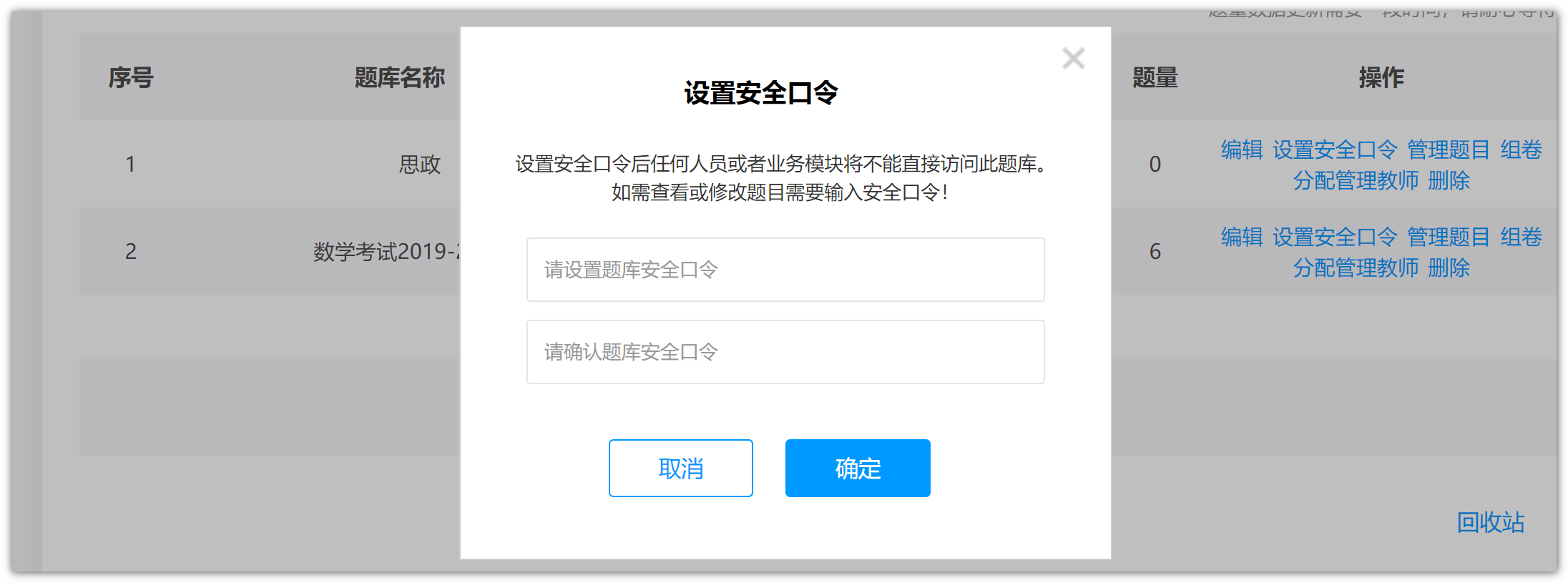 设置题库添加安全口令