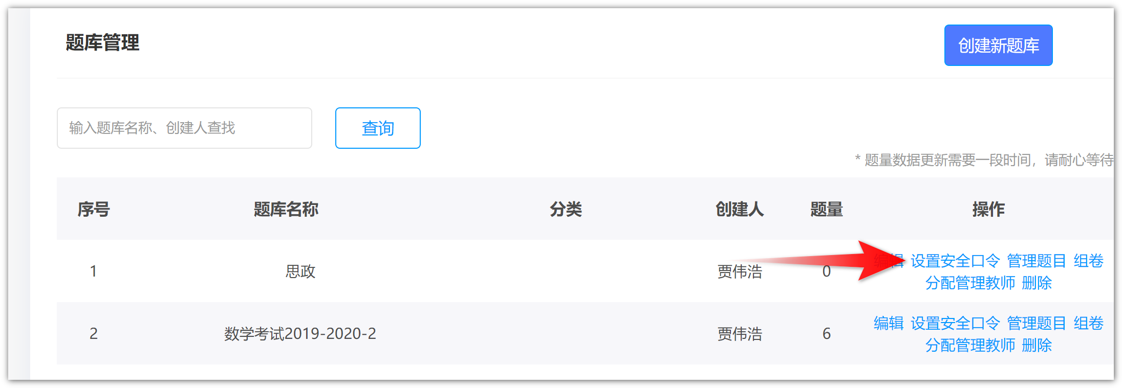 点击题库管理: