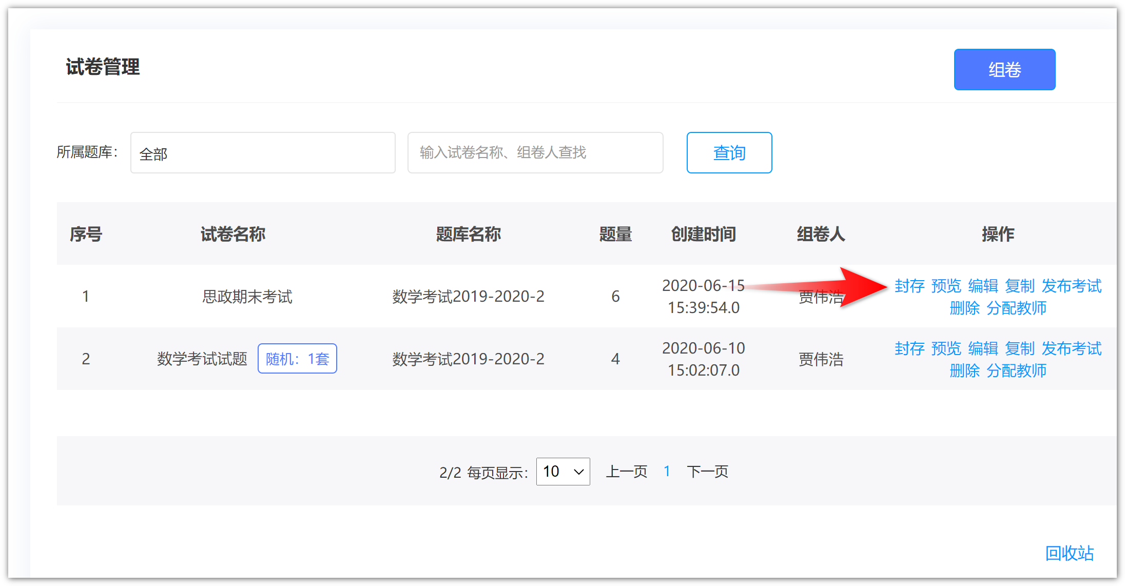 进入试卷管理: