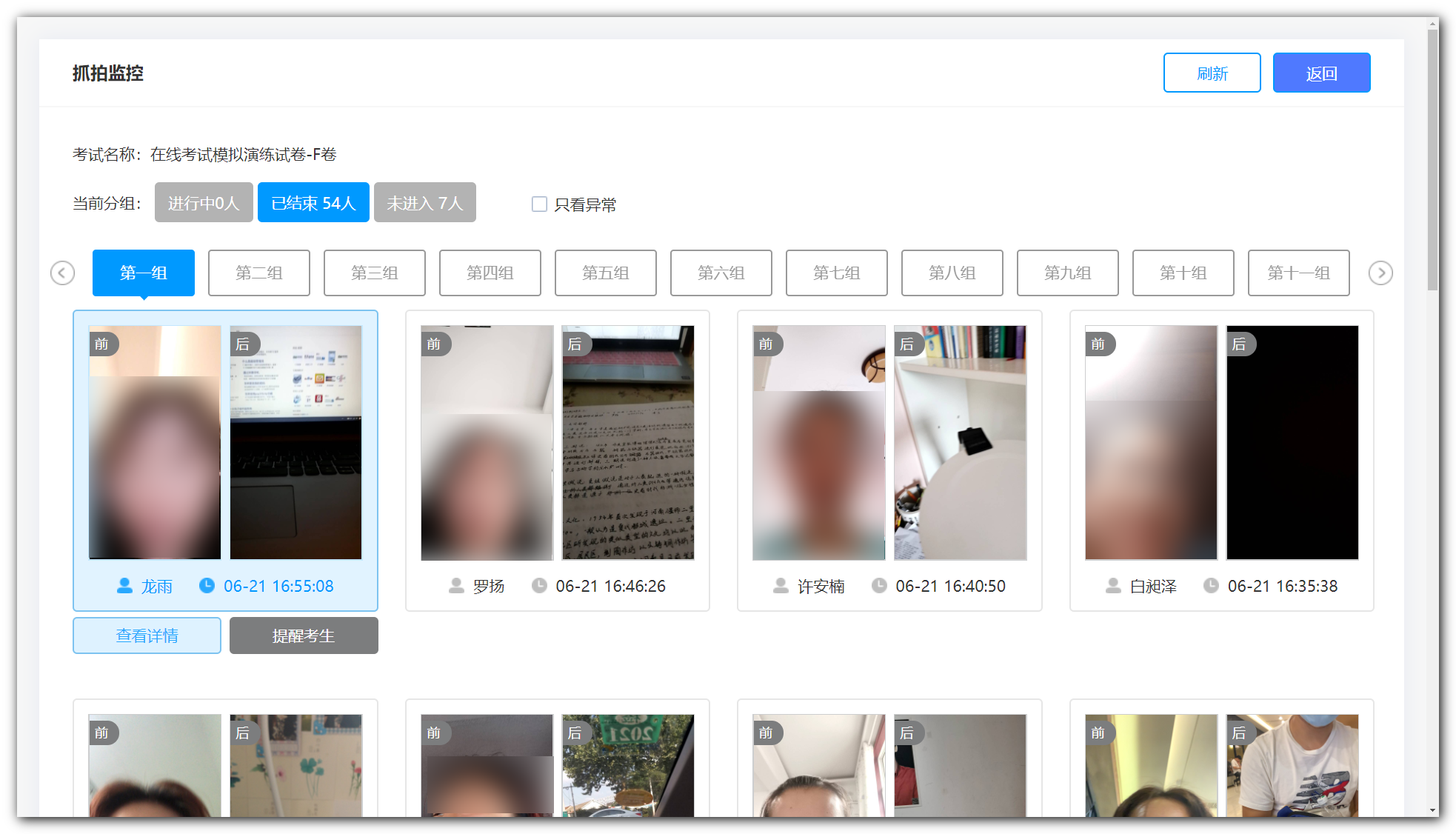 ②抓拍监控:点击可以进入如下页面,具体查看考场内考生的最新抓拍结果。