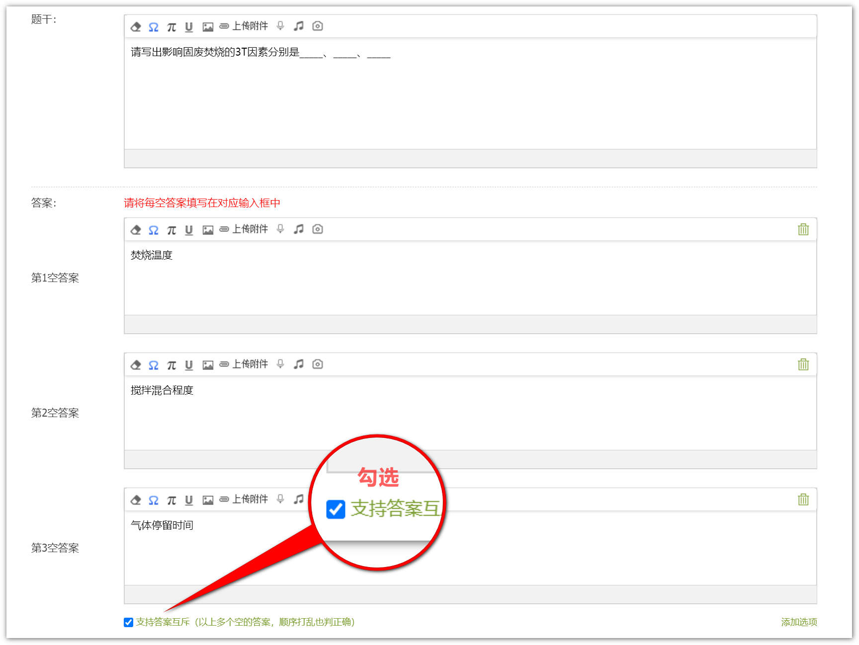 3、学生填写的答案不是必须和参考答案多空之间的顺序一致时,请勾选⑤