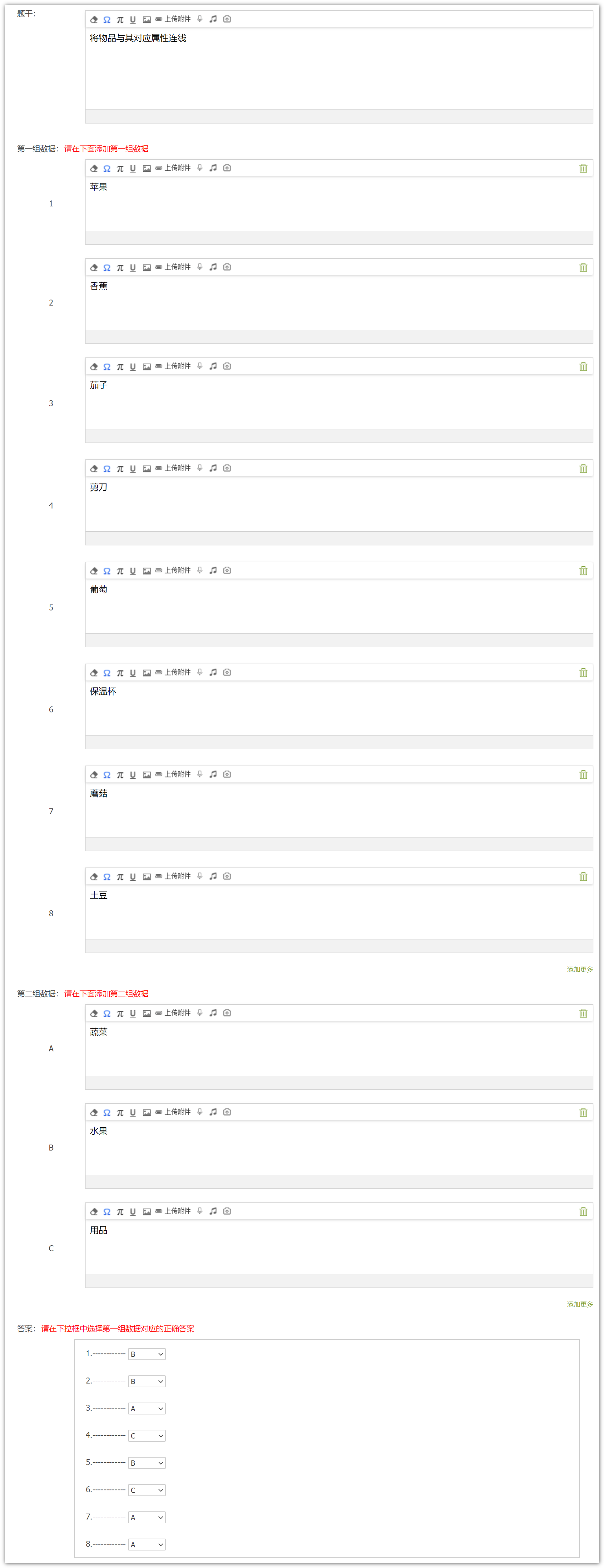 ⑥:给出匹配答案。连线题答案可以重复匹配,比如:1→A,2→C,3→A,4→B