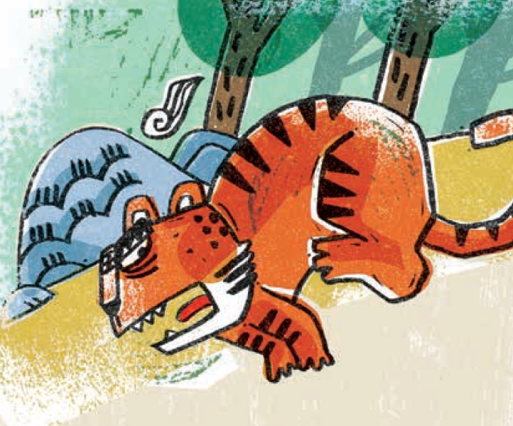 小东西眼睛里流露出恐惧的神情,它以前常跟随老爷爷到山里转,这个声音对于它来说并不陌生。它的四条腿开始打战,它用低低的声音回答:“呜呜——老……老虎来了!”