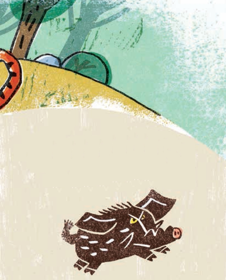 孟姜女怕老虎突然回来,不敢出声,只是着急地对野猪挥挥手,意思是告诉它“赶快逃命去吧”!然后,她蹑手蹑脚地离开,去找小东西。