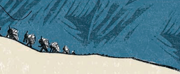 孟姜女顺着石匠手指的方向,看到了一队挑夫正在挑着石头吃力地往山上走,她急忙追上去问:“大哥,你们这里有没有一个叫范喜良的人?”