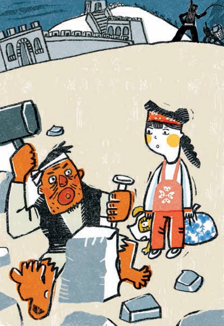 筑城的号子声越来越响,“叮叮咚咚”敲山石的声音也越来越响。拐过一道弯,孟姜女看见十几个石匠正在敲山取石,她的心狂跳起来,走过去问:“大哥,请问你们这里有没有一个叫范喜良的人?”