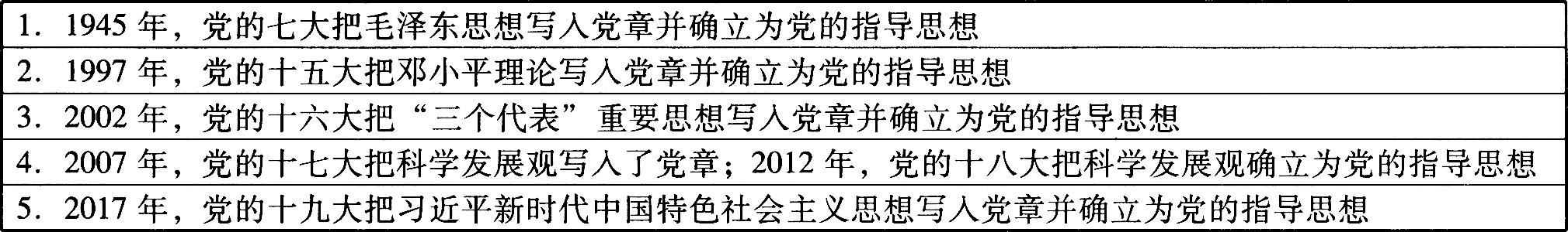 党的十九大的一个历史性贡献,就是把习近平新时代中国特色社会主义思想同马克思列宁主义、毛泽东思想、邓小平理论、“三个代表”重要思想、科学发展观一道,确立为党必须长期坚持的指导思想,实现了党的指导思想又一次与时俱进。