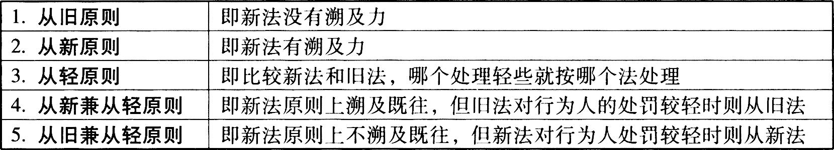 中国现时期主要采取从旧兼从轻的原则,在特殊情况下法可以溯及既往。按照《立法法》的规定,中国法的溯及力现行制度为:“法律、行政法规、地方性法规、自治条例和单行条例、规章不溯及既往,但为了更好地保护公民、法人和其他组织的权利和利益而做的特别规定除外。”