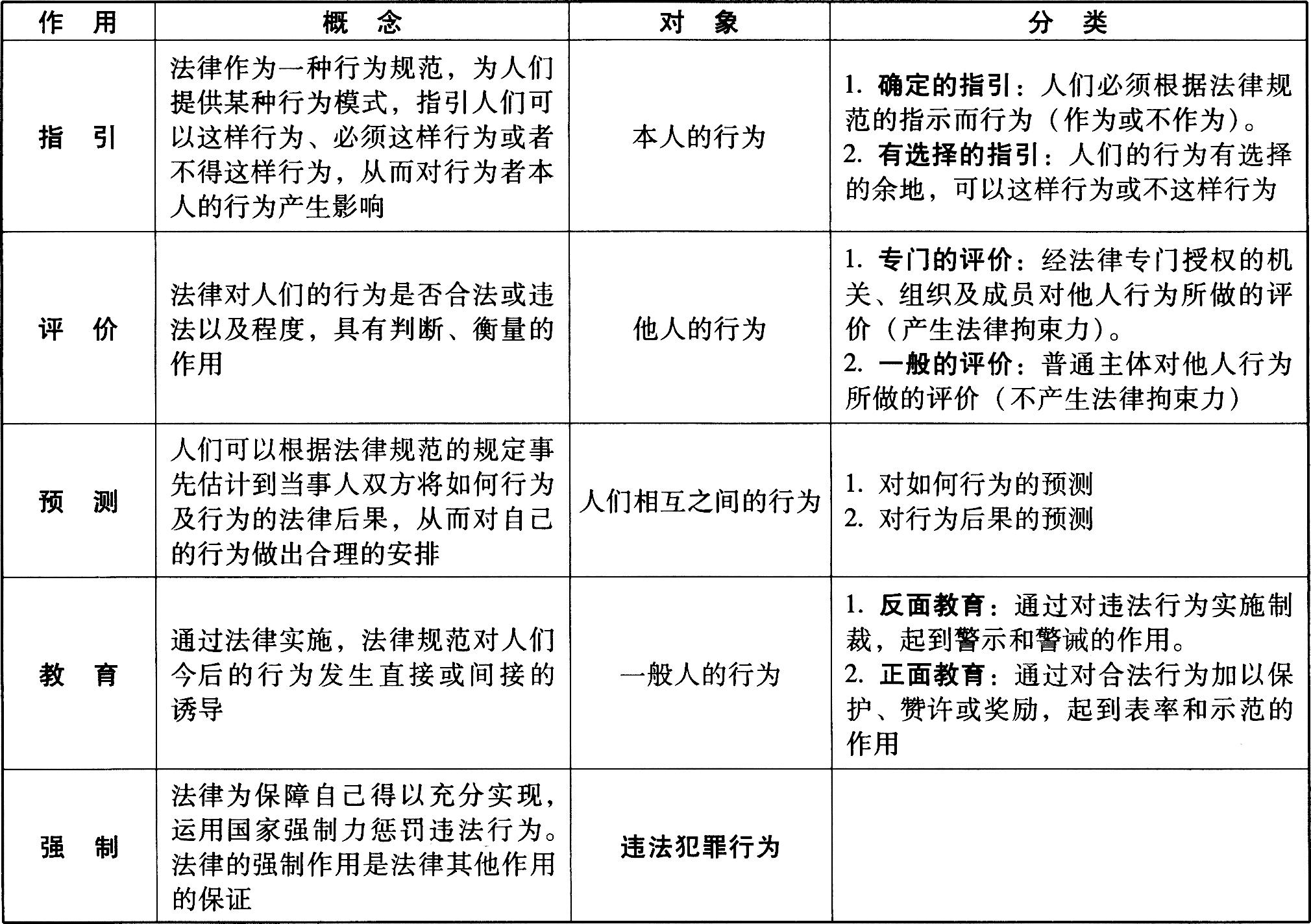 A.指引、评价、惩罚、强制、教育作用