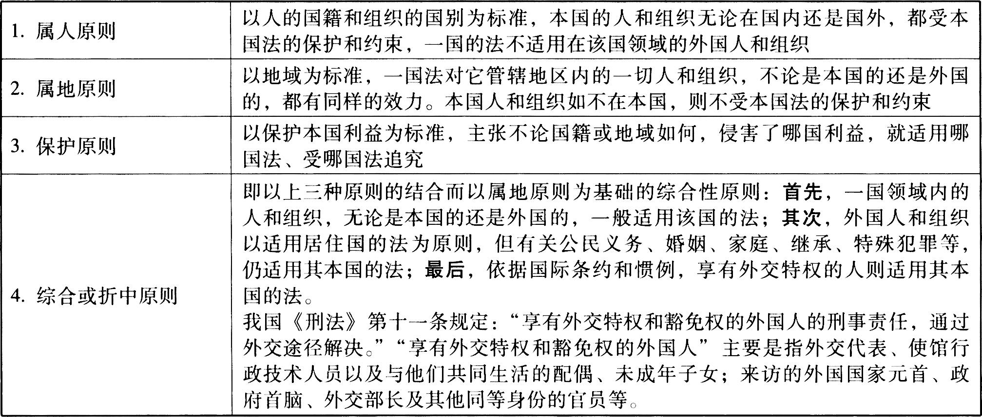 法对人的效力所实行的原则大体有四种:
