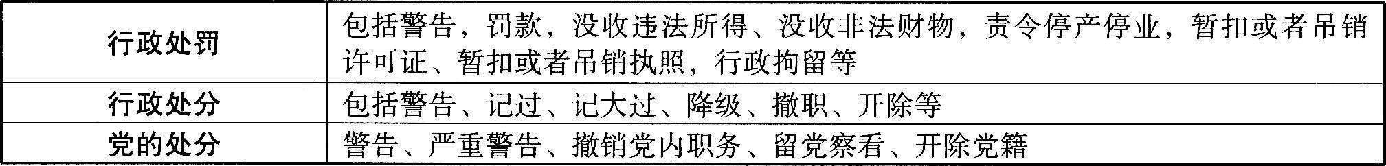 (1)惩罚。惩罚即法律制裁,是国家通过强制对责任主体的人身、财产和精神实施制裁的责任方式。惩罚(法律制裁)包括以下四种: