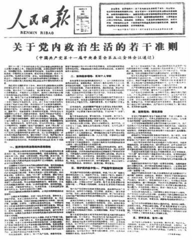 ★党的十一届五中全会通过的《关于党内政治生活的若干准则》。