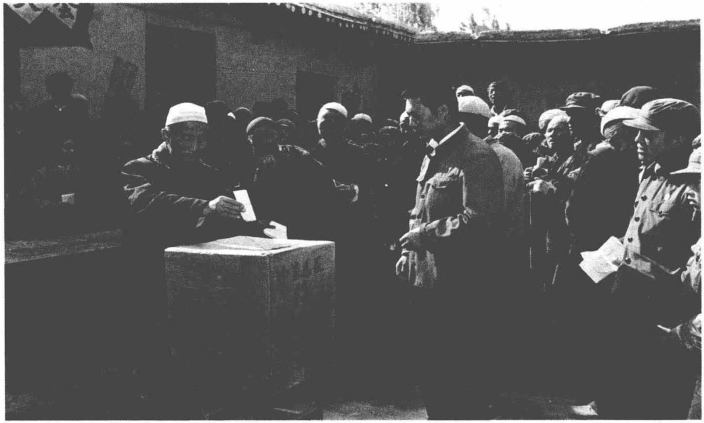 ★1980年6月,甘肃省临夏回族自治州广河县进行县级直接选举,回族群众在投票。