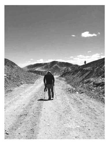 突然,我发现前方有一个拄着双拐的人,一步一挪地艰难使力。我不仅疑惑地与他攀谈起来:“怎么……你也来参加徒步啊?”