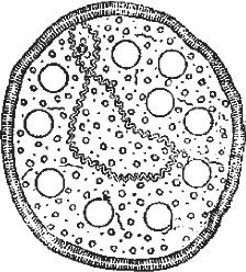 细胞膜包着的黏稠透明的物质,叫做细胞质。在细胞质中还可看到一些带折光性的颗粒,这些颗粒多数具有一定的结构和功能,类似生物体的各种器官,因此叫做细胞器。例如,在绿色植物的叶肉细胞中,能看到许多绿色的颗粒,这就是一种细胞器,叫做叶绿体。绿色植物的光合作用就是在叶绿体中进行的。在细胞质中,往往还能看到一个或几个液泡,其中充满着液体,叫做细胞液。在成熟的植物细胞中,液泡合并为一个中央大液泡,其体积占去整个细胞的大半。