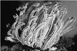 海百合的身体分为茎、萼、腕三部分,是有柄的棘皮动物,大多数种类用茎固着在海底生活,远远看去好像植物中的百合花。