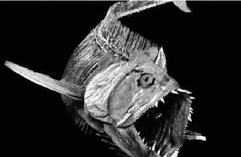 它的头和躯干前部都披着厚重的“甲胄”,甲胄的长度可达3米,上下颌非常强壮,凡是被恐鱼捕捉到的其他鱼类,都很难逃脱命丧黄泉的厄运。