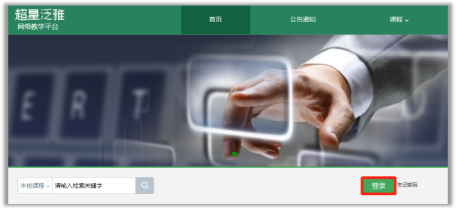 在电脑上浏览器输入本校泛雅网络教学平台网址,点击页面中的