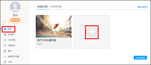 (1)登录后,点击“课程”,点击“新建课程”或“+”,建立新课程。