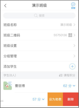 手机端移除学生:进入课程——班级,点击页面右下角“学生”,可以看到学生列表,找到对应学生,左滑即可删除学生,或设置该学生为助教。